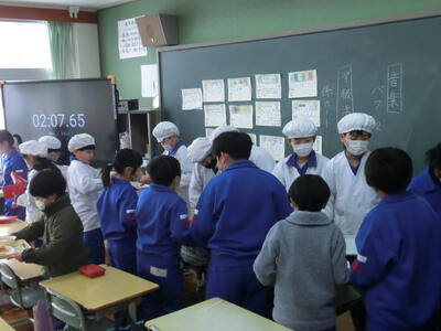 本日より3学期の給食が開始しました。冬休み中首を長くしていた子も多くいたのではないでしょうか?今日の献立は、ご飯、牛乳、中華ラビオリ、キムチ炒め、卵スープでした。初日の給食は、中華献立。たっぷりと味わっていただきました。3学期も毎日作ってくださっている給食センターの皆様に感謝しながらいただきたいと思います。