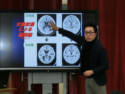 学校薬剤師さんによる薬物乱用防止教室が6年生を対象に行いました。なぜ子供がアルコール(お酒)摂取してはいけないのか脳の画像を見せてもらいながら教えていただきました。また、薬の過剰摂取(オーバードーズ)の危険性についても専門的な立場から詳しく教えていただきました。