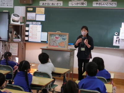 1・2年生が人権についての学習をしました。人権擁護員の皆様から紙芝居の読み聞かせをしていただき、身近な人権について考える機会をいただきました。いじめは、された側もした側も嫌な思いをすることを紙芝居を通して感じることができたようです。人を思いやる優しさが大切なことを学ぶことができました。