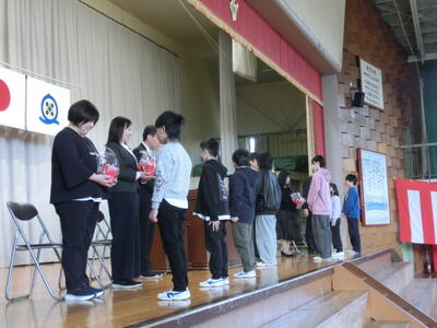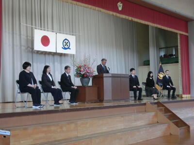 2026年度人事異動により2名の退職と5名の異動がありました。今日は、そのお世話になった先生方とのお別れの式を行いました。お世話になった先生方の話を真剣に聞いている様子から感謝の気持ちが伝わってきました。7名の転退任される先生方におかれましては、新天地でのご活躍を祈念しております。今まで、本当にお世話になりました。