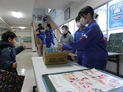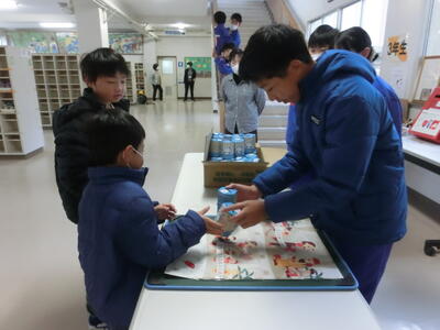 ボランティア委員会が、赤い羽根共同募金を行いました。子ども達は、募金の意味を各々考え、無理のない金額をドラえもん募金箱に入れて協力しています。温かい輪の広がりが見られました。